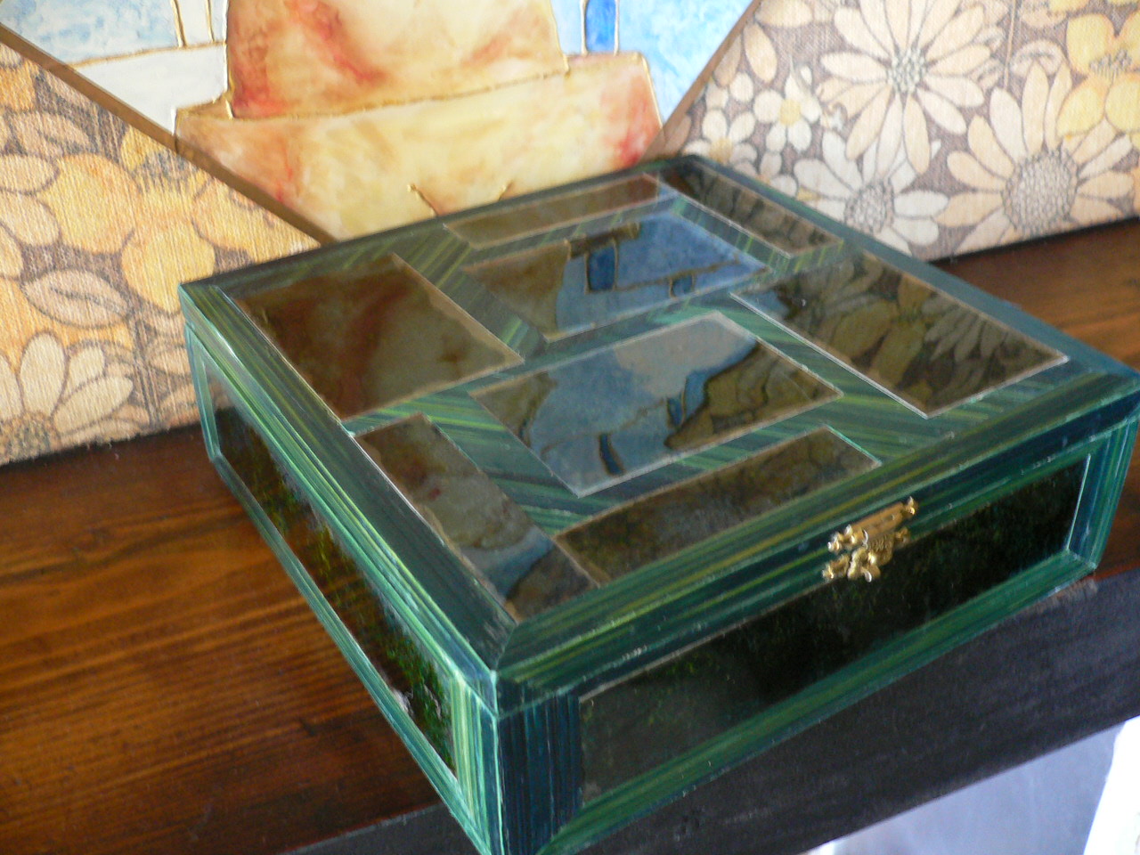 coffret bois, paille, mica